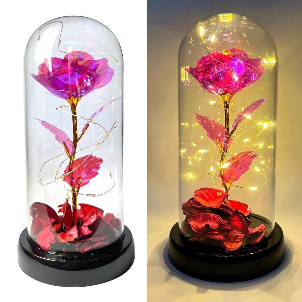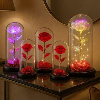 Protege a rosa e cria um efeito encantador com a iluminação.